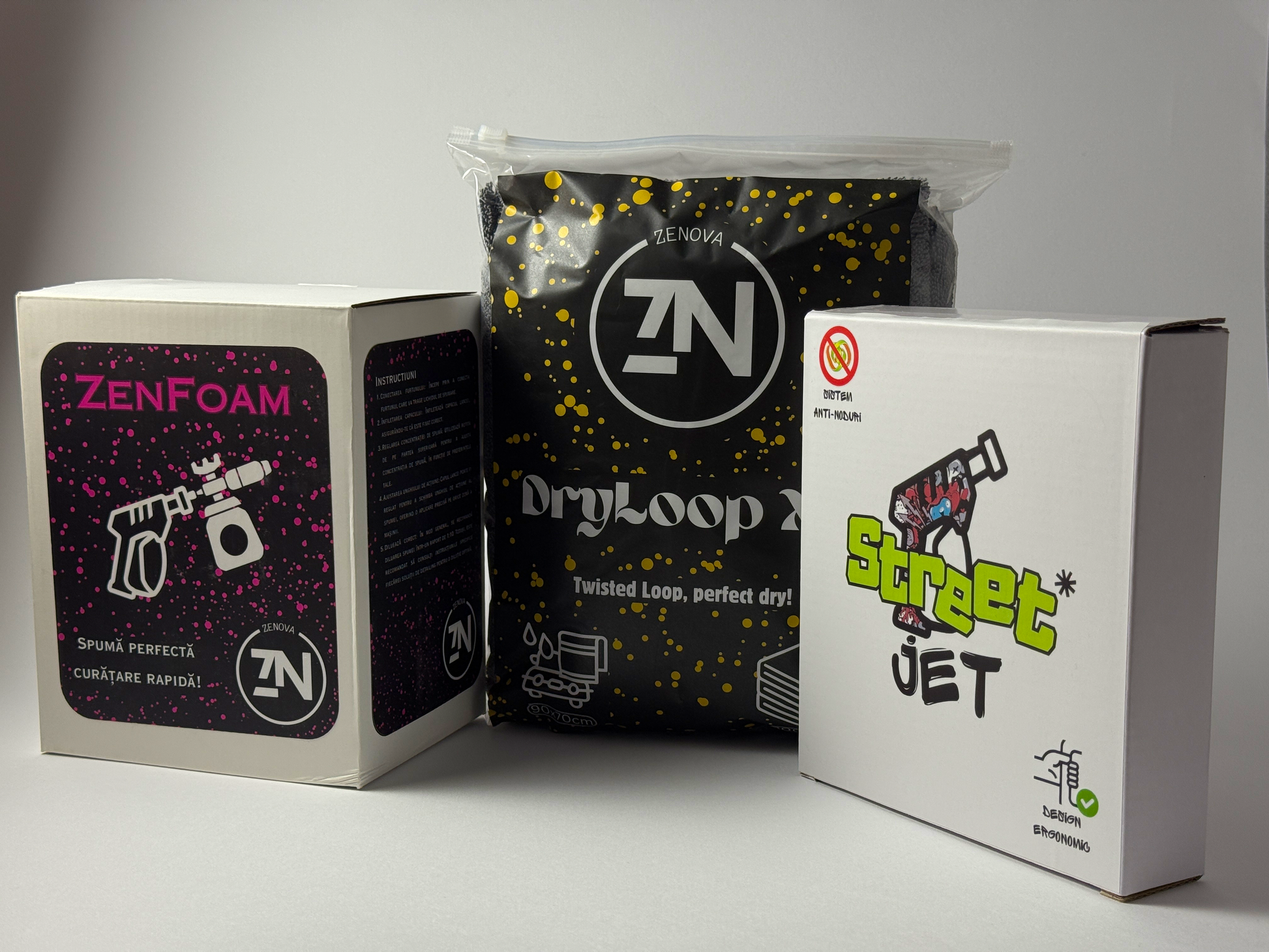 Transformă fiecare spălare auto într-o experiență profesională cu QuickWash & Dry, kitul complet Zenova, conceput pentru eficiență, confort și rezultate premium: